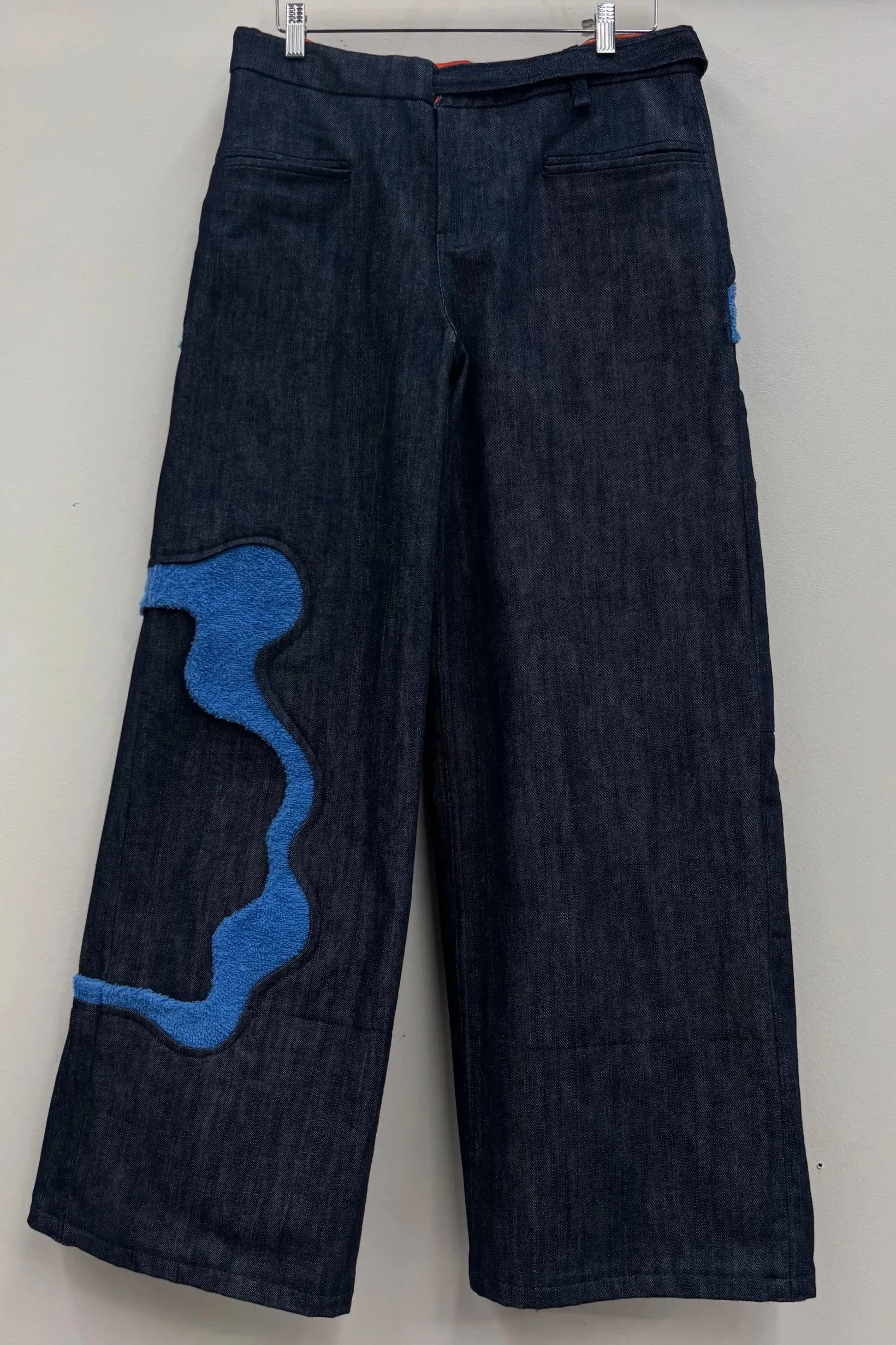 Denim cut-and-sew denim straight leg pants with Terry cloth accents