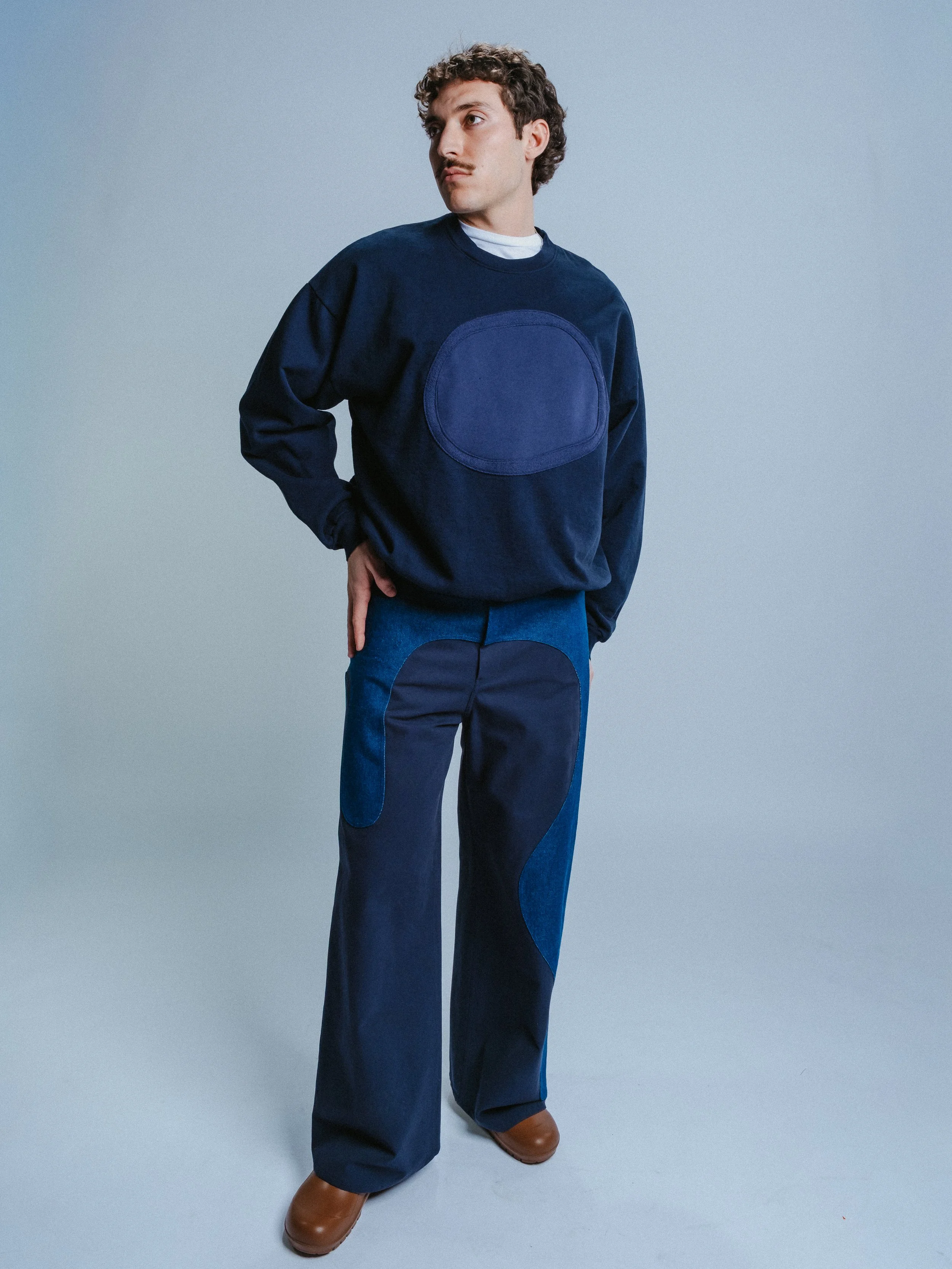 Navy hoodie with blue amoeba dot
