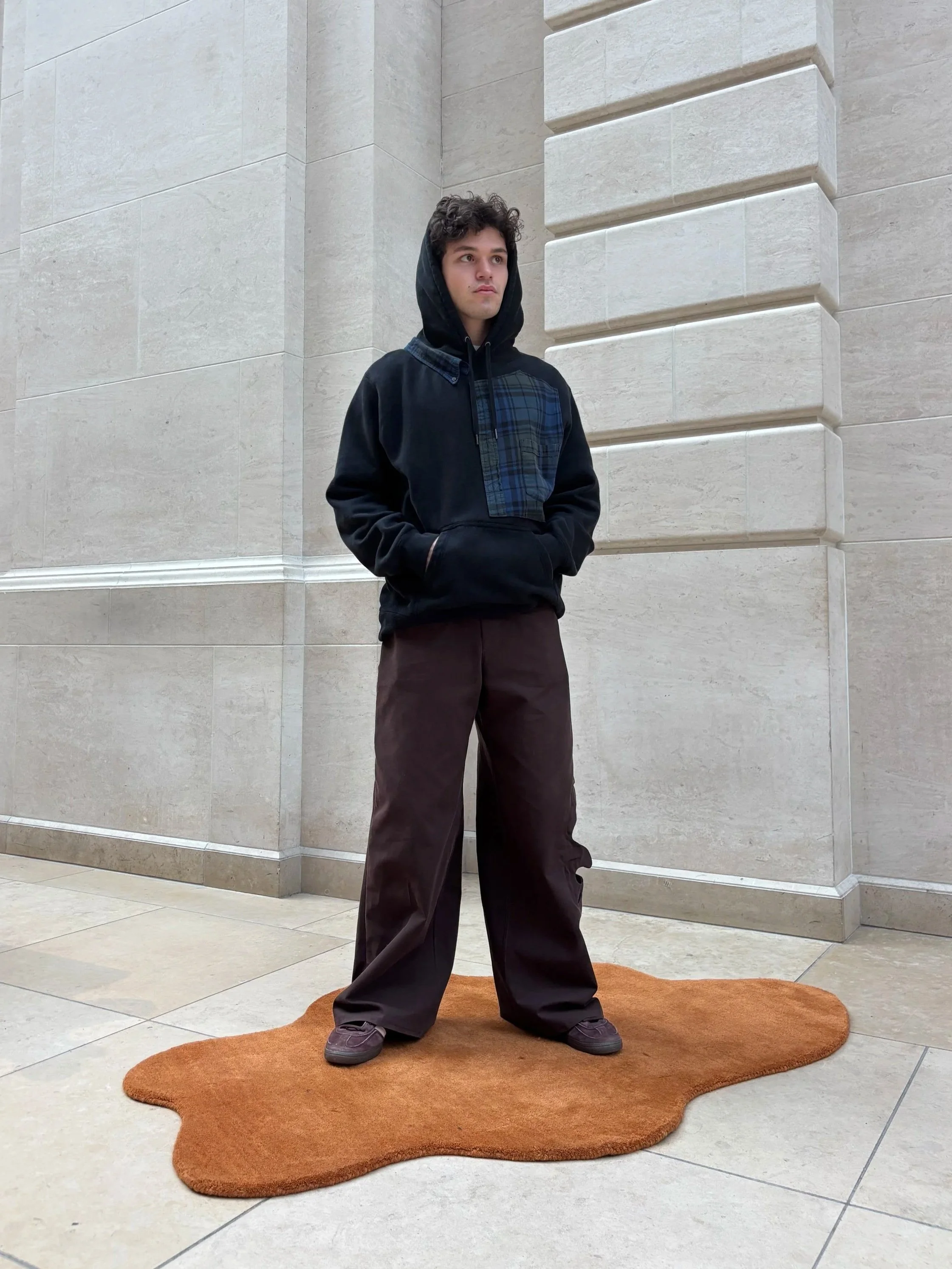 Black hoodie with flannel shirt details