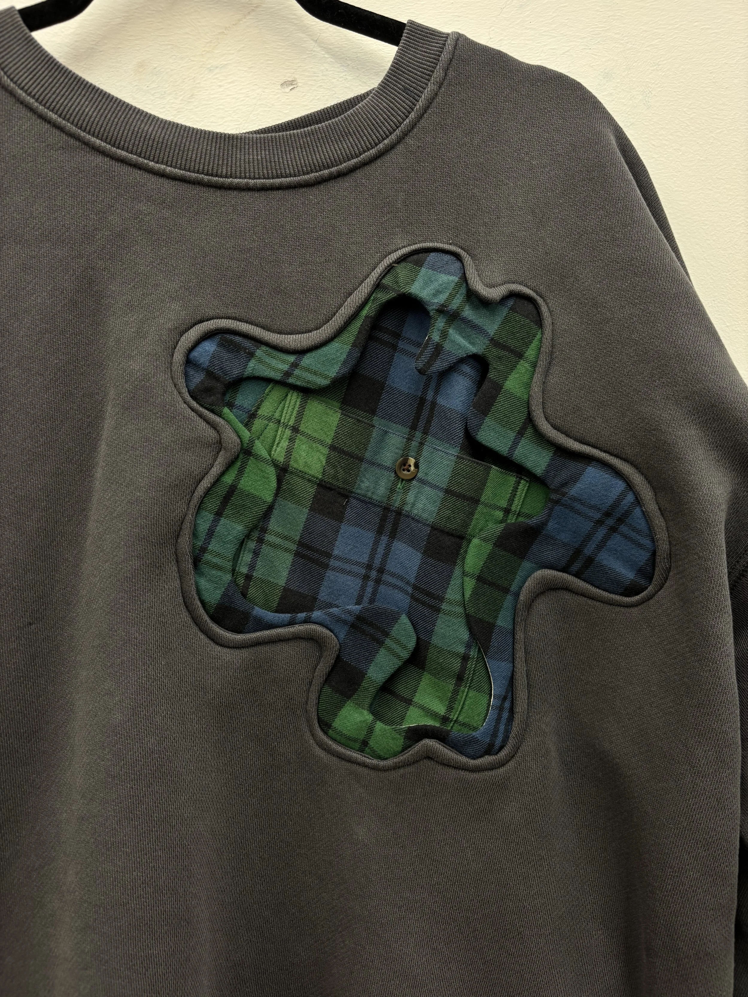 Plaid amoeba pocket detail on the front